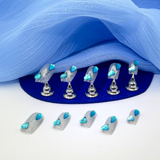 Handmade|Azure Butterfly Elegance-Coffin Nails
