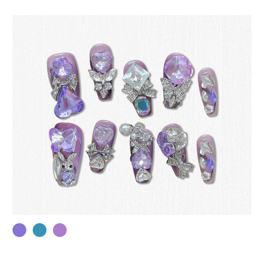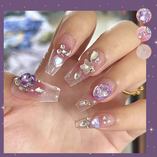 Handmade|Dazzling Purple Diamond-Coffin Nails